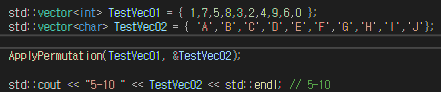 ex) 배열 P = <2, 0, 1, 3>안의 순열을 배열 A = <a, b, c, d>에 적용하면 <b, c, a, d>가 된다.