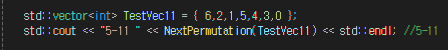 n개의 원소로 만들 수 있는 순열의 갯수는 n!개이다. 순열을 사전 순으로 정렬할때 다음으로 올 순열을 구하라.