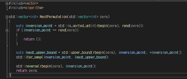 ex) P=<1,0,3,2>의 다음 순열은 <1,2,0,3>
