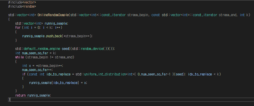 실시간으로 패킷이 유입되는 상황에서 어떤 정수값 k가 주어졌을 때, k개의 임의의 패킷을 균일한 확률로 유지하는 알고리즘을 설계하라.